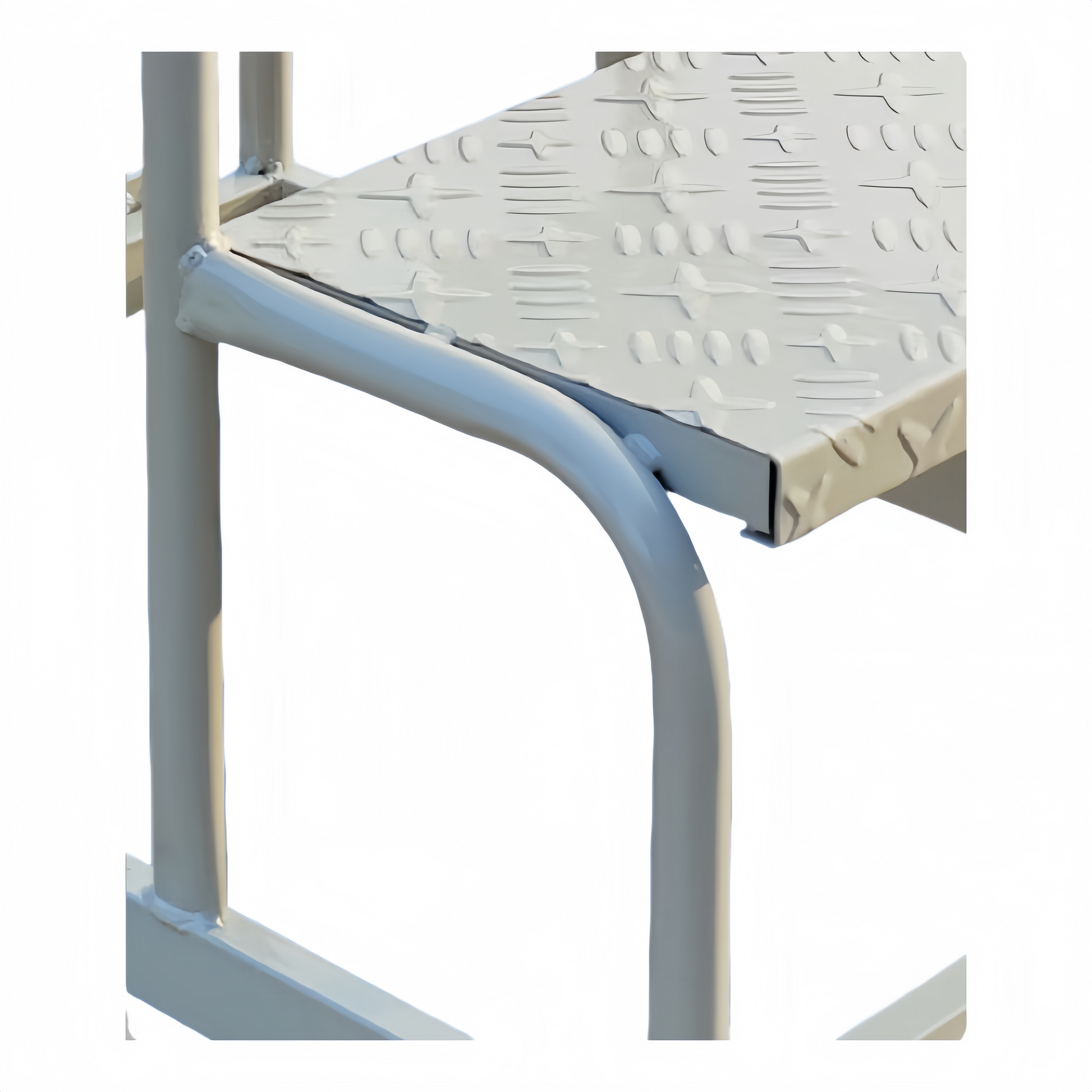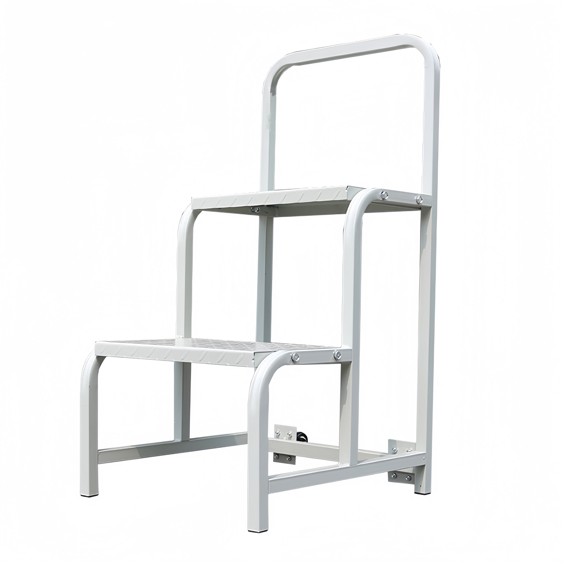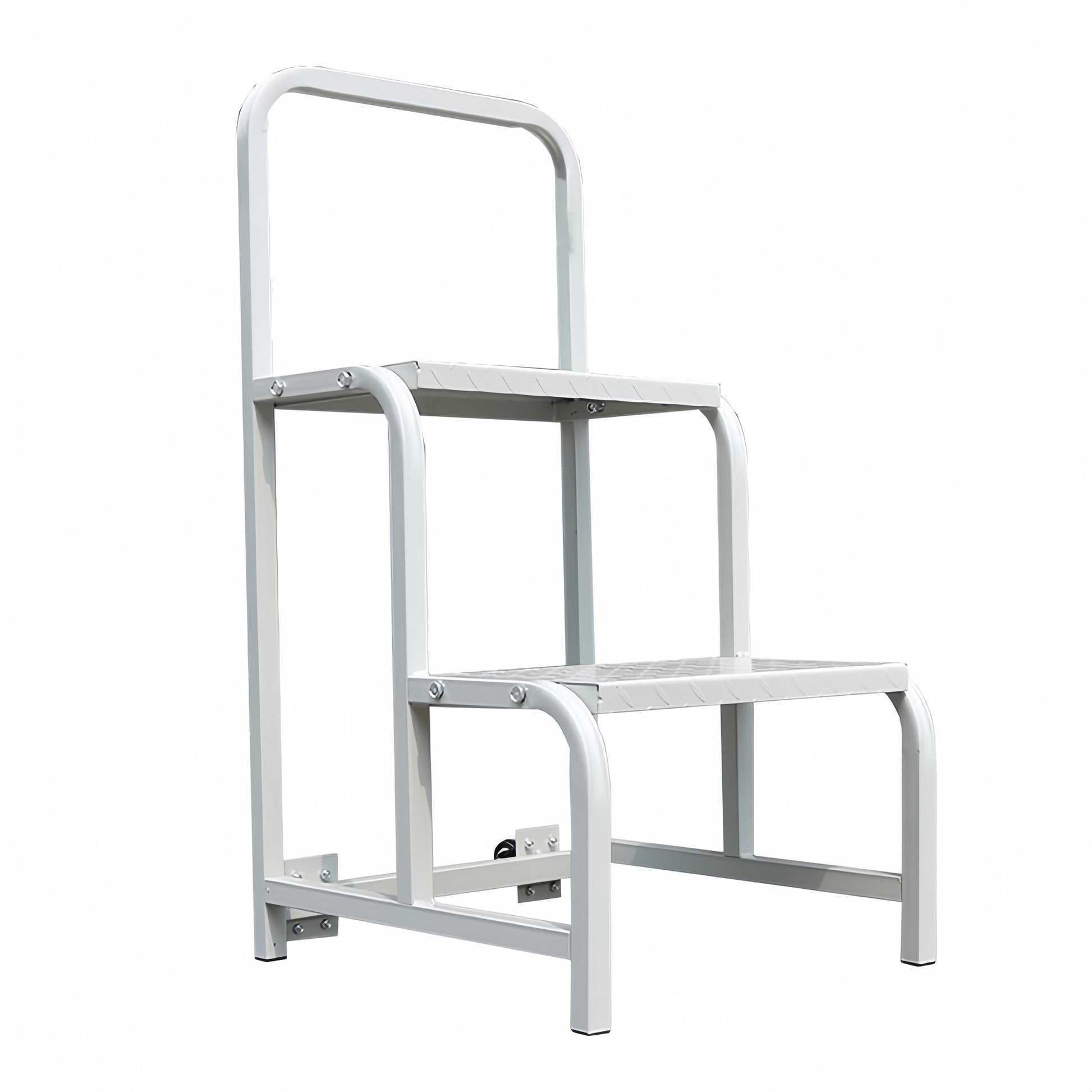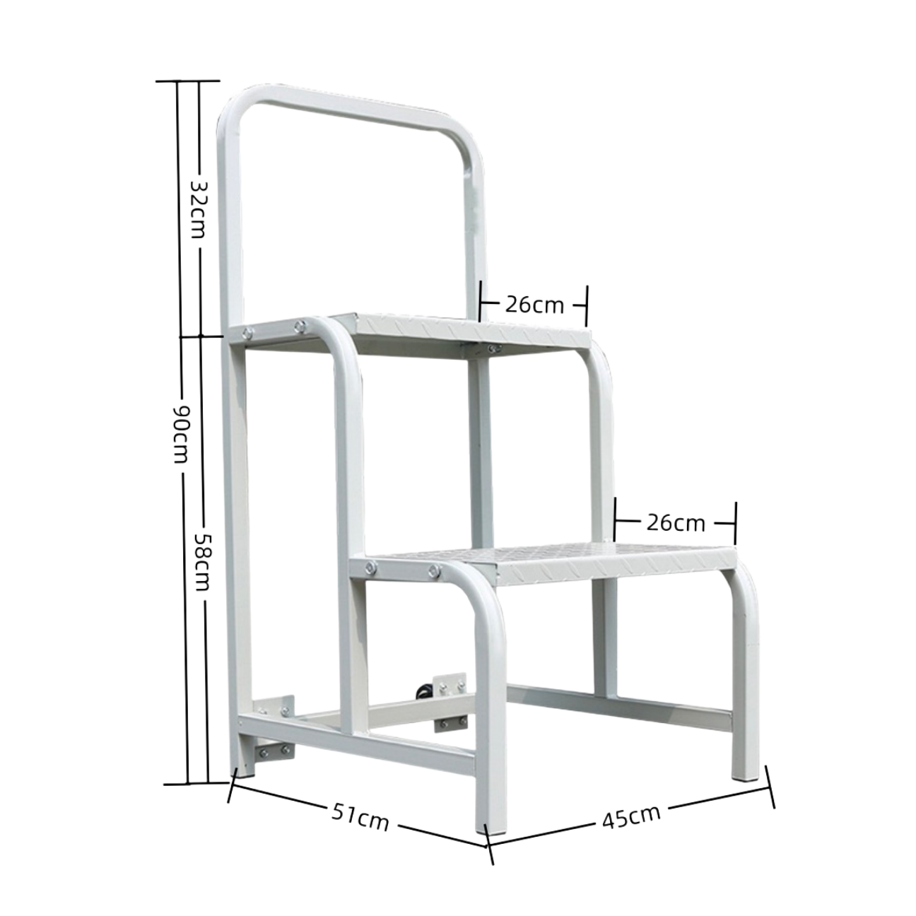 - Focus on every detail: On the top step, there is a 32cm height rails for better stability while using. The cold rolled steel pipe is in moderate size for holding onto. The 2 step stairs is designed with large round corners rugged, safer for daily use purposes.