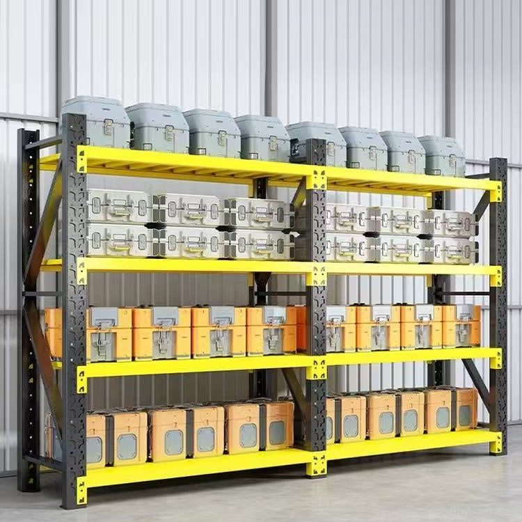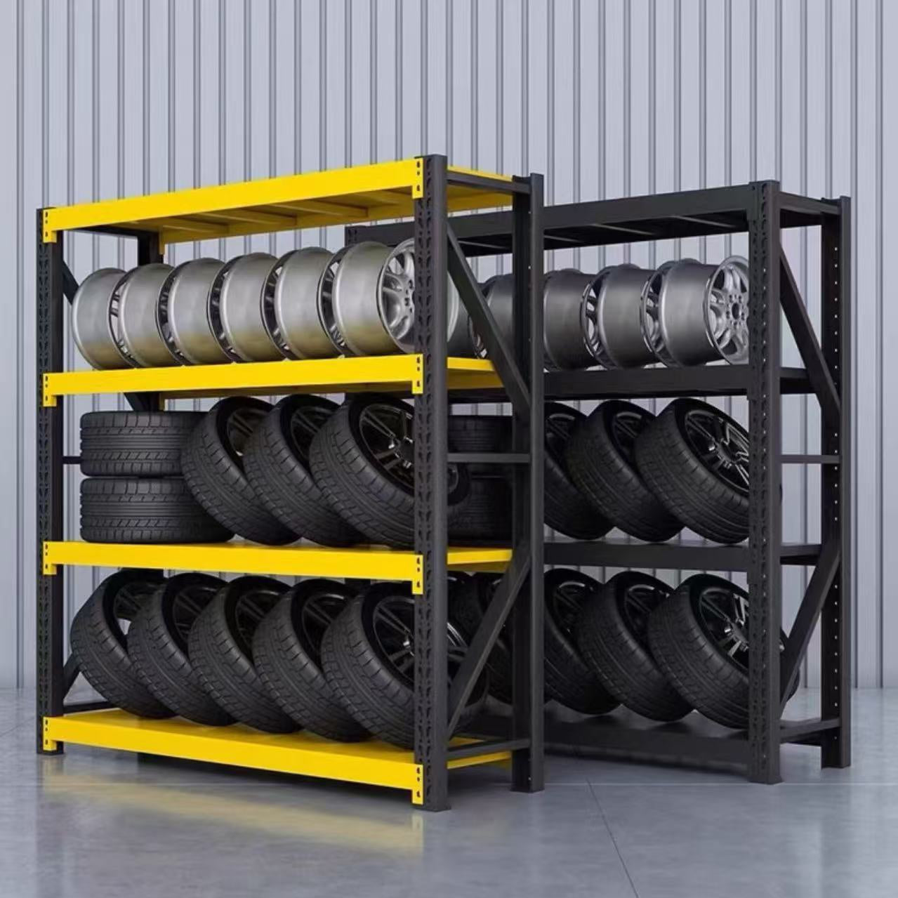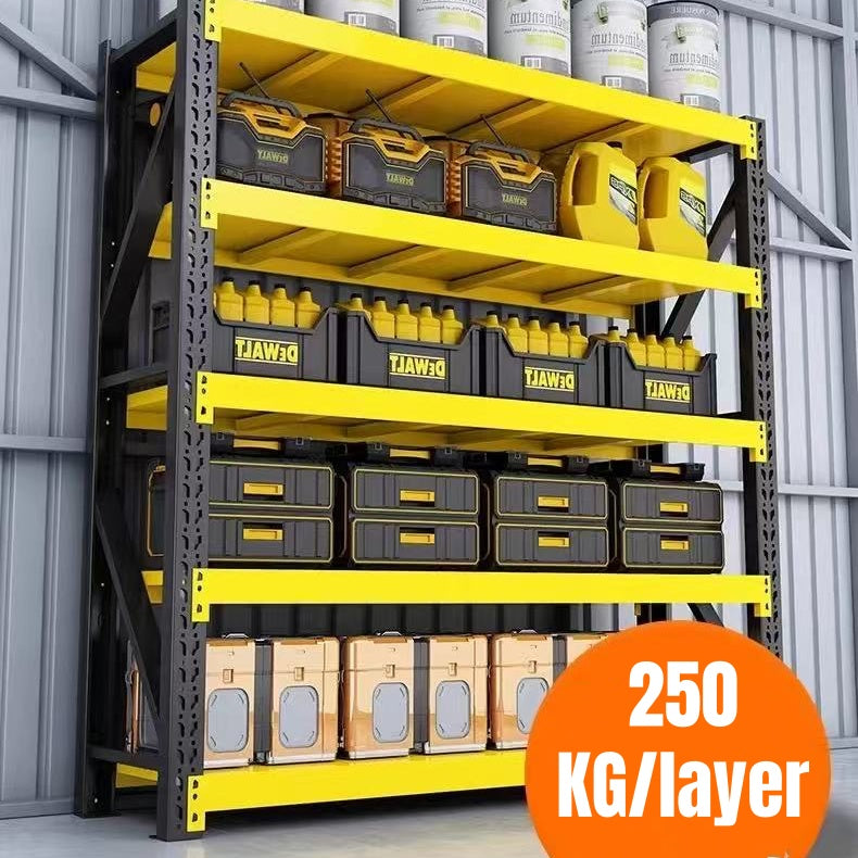 Durable and Versatile Storage Solution: This racking system provides a customizable storage solution for warehouses/garage and supermarkets, with a weight capacity of 200-250kg each layer, making it suitable for various storage needs.