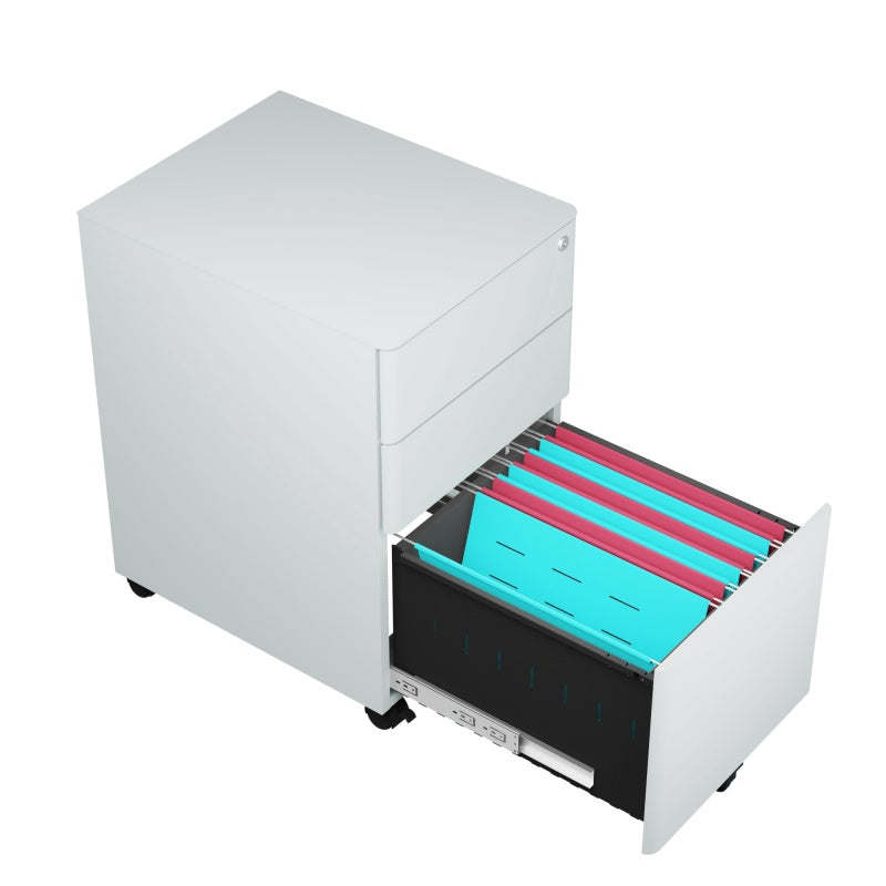 Featuring simple stylish appearance, this arc side design 3 drawer metal file cabinet with lock fits under most desks, can better integrate into the office surroundings, keep your workspace tidy and clean.