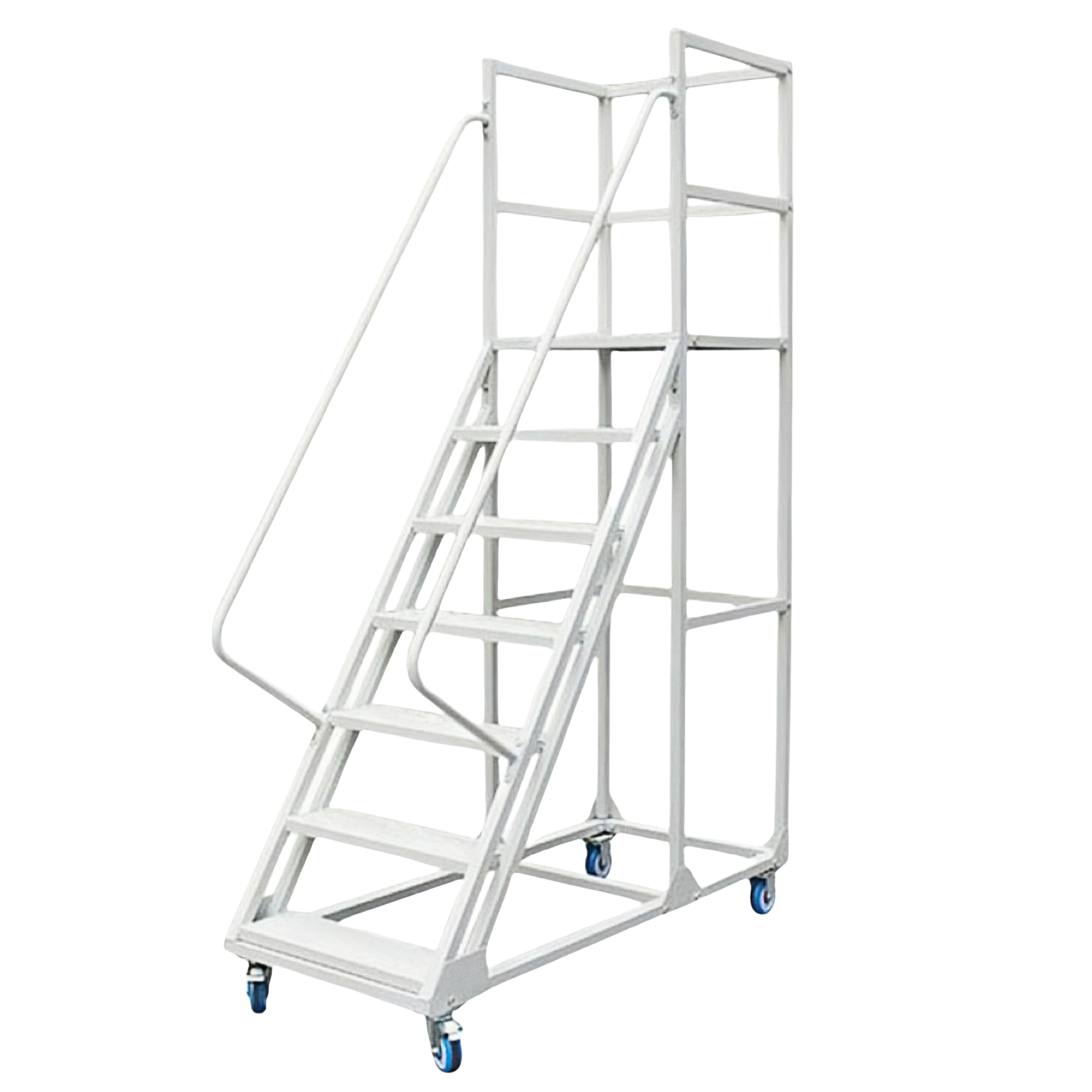 Steel 7 Step Mobile Safety Ladder With Wheels - Light Grey
