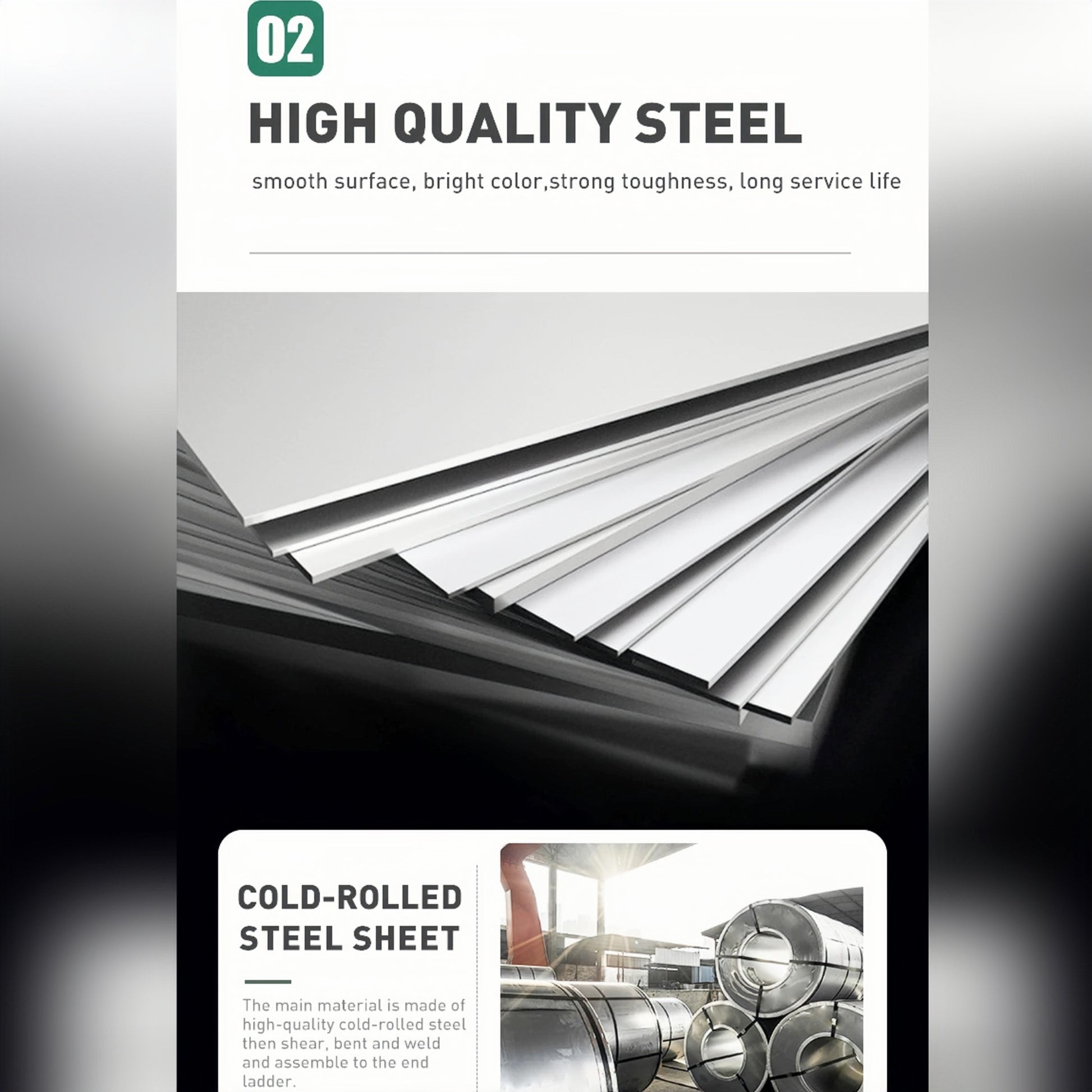 - Sturdy construction: Made from high-quality cold rolled steel, this 7 steps ladder is designed to be stable & reliable, with max loading capacity up to 300kg, could provide a safe and secure platform for various tasks.