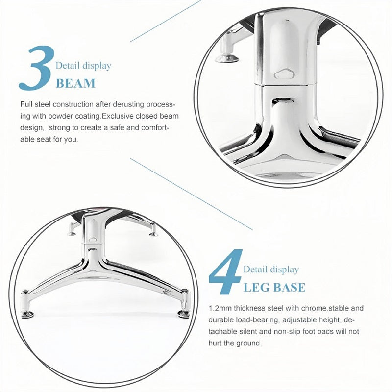 - Material: High-quality cold rolled steel plate and High-quality chrome, Leather pad, thickness arm&leg1.2mm, back&seat1.4mm, with beam1.5mm, leather pad 20mm.
