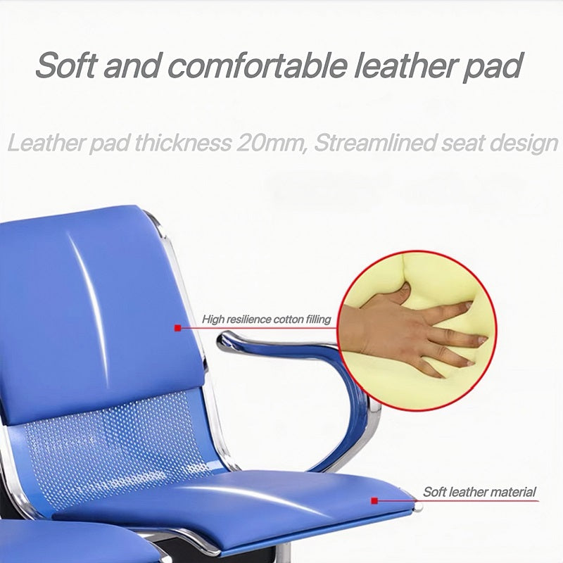 - Stable & Durable: Constructed with Stainless Steel(1.5mm thickness perforated cold-rolled steel, powder coated, 1.2 mm thickness cold-rolled steel, chromed) and quality PU leather, the waiting chair offers a comfortable seating experience. Prevent to rust and prolong service life. Maximum weight capacity for each chair is 150 lbs.