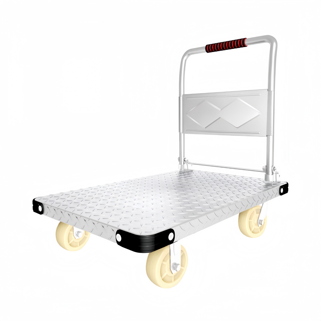- Impressive Load Capacity With a remarkable 500 kgs capacity, this heavy-duty flat cart is designed to make transporting bulky and heavy items effortless. Equipped with two 360-degree swivel wheels, maneuvering around tight corners or crowded spaces is a breeze. Built from premium materials, this platform is tailored for all your transportation needs.