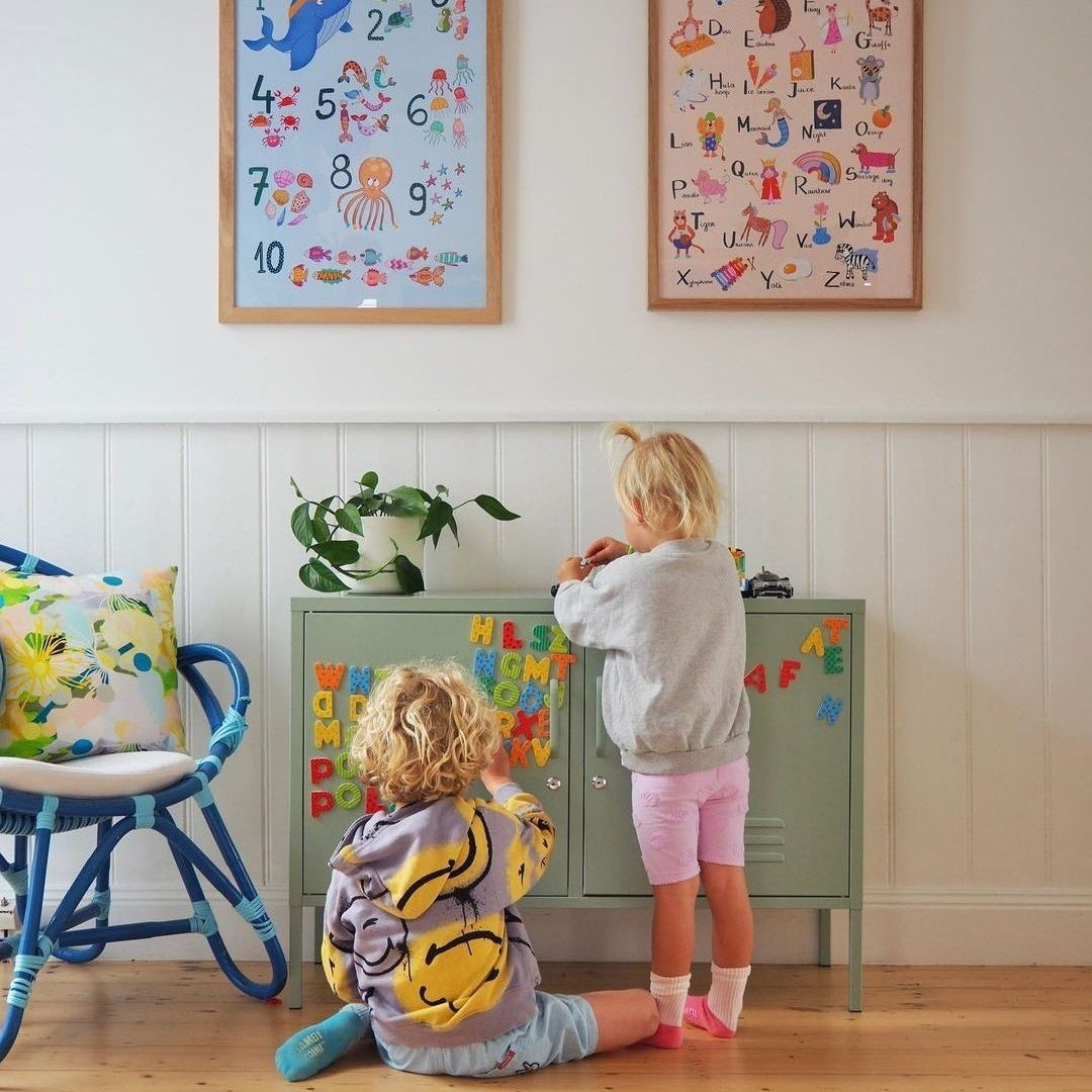 It will is your new favourite tv unit, console or home storage. It's perfectly proportioned to make the most of that alcove as a tv unit but works just as well next to a bed, and the 4-compartment lockers ensure enough space to store clothes, shoes, books, office supplies and cleaning supplies, it's seriously versatile! The cable holes in the back are perfect for all those messy tv chords + chargers so you can keep them neatly tucked away + the doors are lockable so all your precious things will be safely stored inside.
