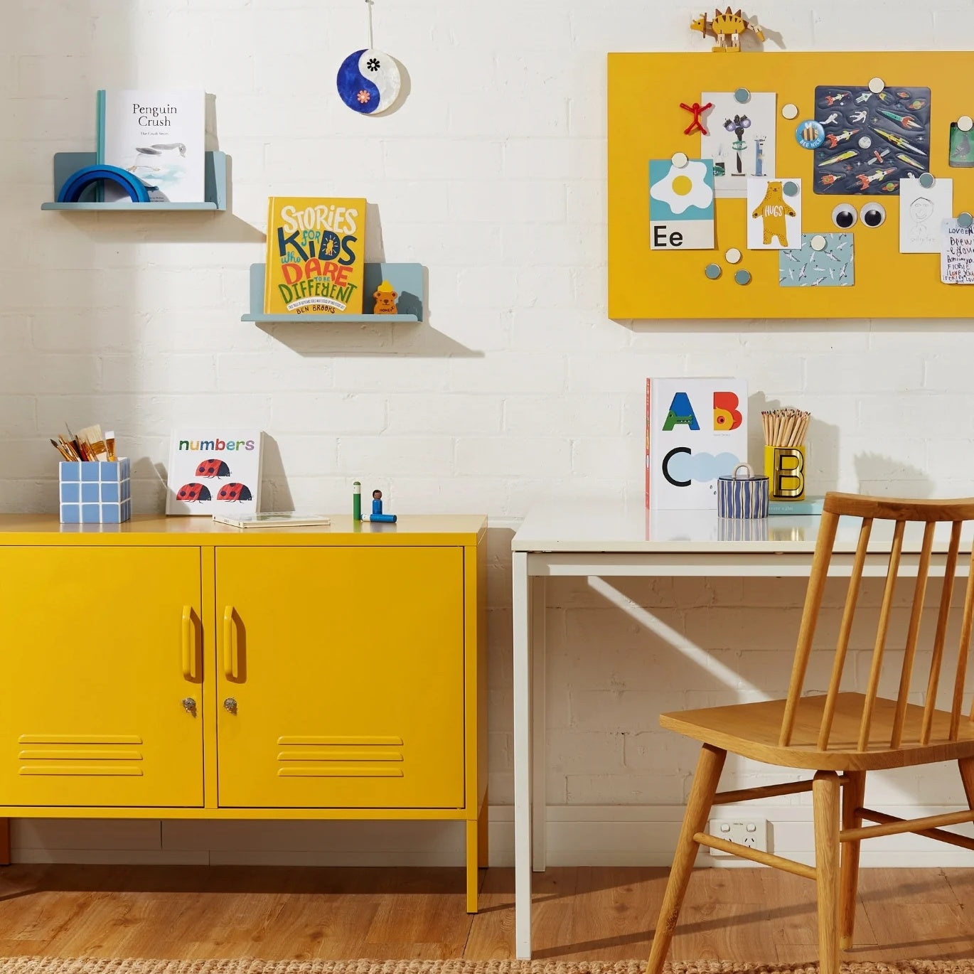 Steel TV Stand Metal Locker Adjustable Shelves Sideboard Storage Cabinet - Mustard Yellow